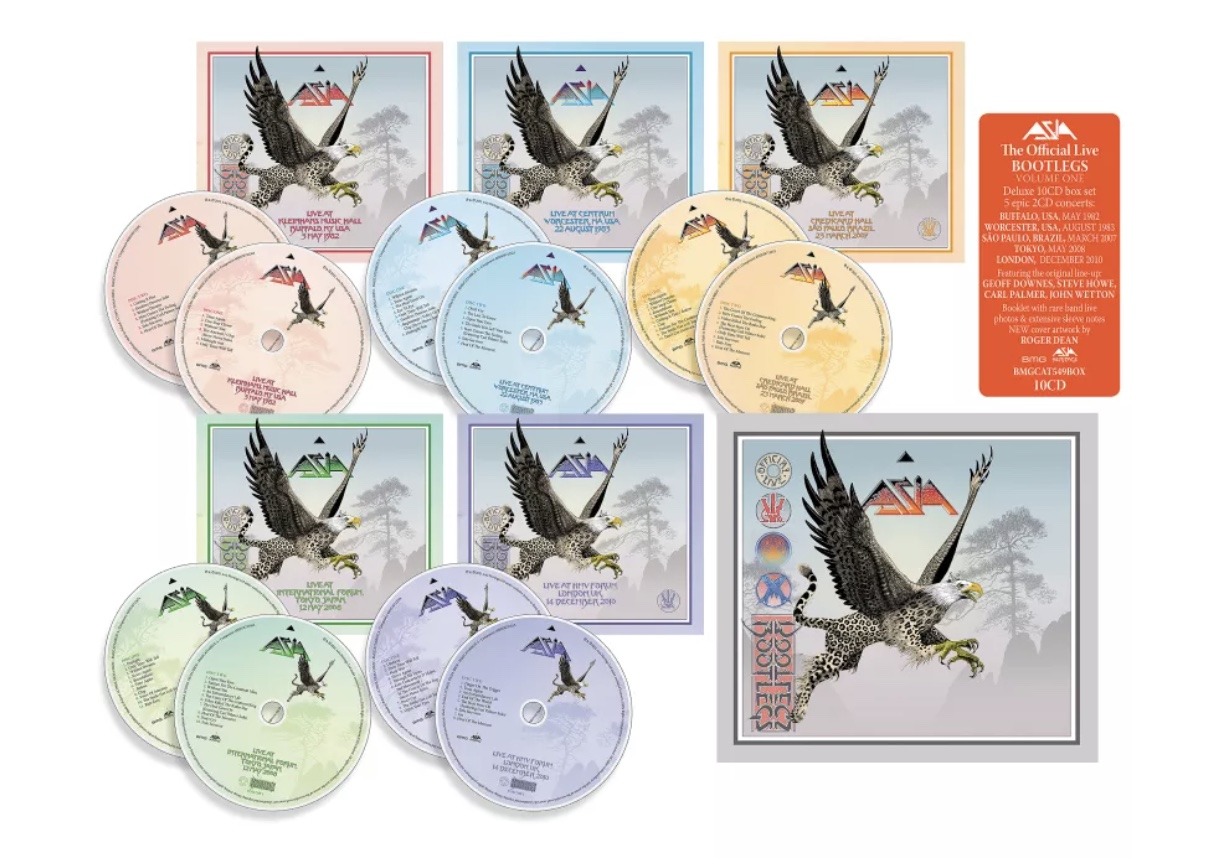 The Official Live Bootlegs Volume 1 celebrates the huge appeal of the concert tours that followed ASIA’s first two albums in 1982 and 1983. The success continued following ASIA’s 25th anniversary reunion in 2006 and three more highly acclaimed albums. The slipcase boxset features 5 x 2CD concerts from 1982 (Buffalo, NY, USA), 1983 (Worcester, MA, USA), 2007 (São Paulo, Brazil), 2008 (Tokyo, Japan) and 2010 (London, UK).