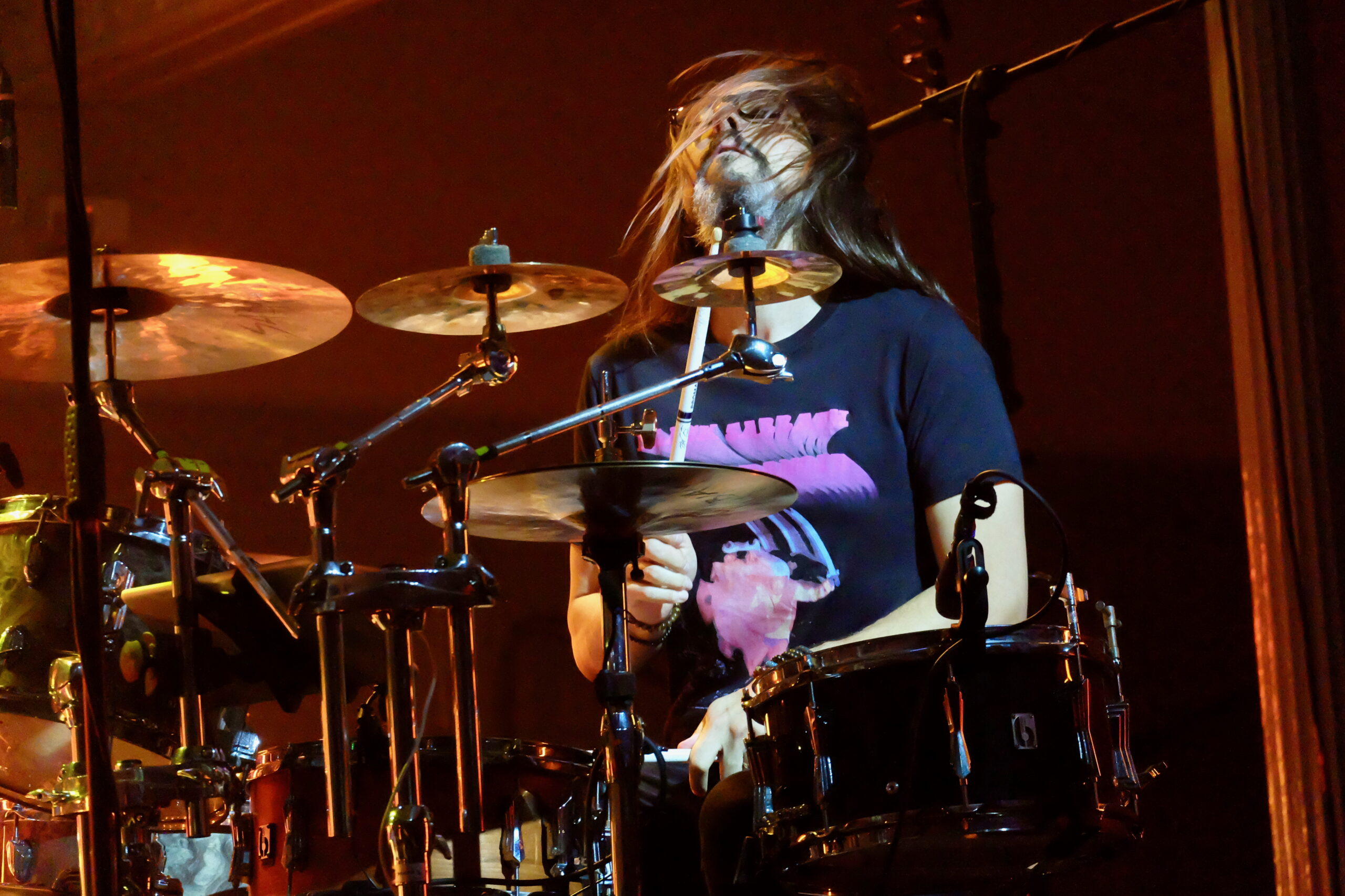 The opening “Light Left In The Day” has an overture quality, previewing themes and melodies which would feature later in the show, and already the musicians are multi tasking across their instruments. Frontman and main vocalist Alberto Bravin juggles the band leader/ conductor/ audience link-person, on top of singing and playing. An interesting recent switch in the BBT set up is that Nick D’Virgilio’s drum kit is stage left and rotated so that he can face sideways towards his band members. You can see the interaction, eye contact and nods/ cues are a key part of the band interplay, and, it looked to me, that this also provides the opportunity for some more spontaneous twists within the longer more open passages. The opener is followed by “Oblivion”, a powerful rocker which comes across really well live.