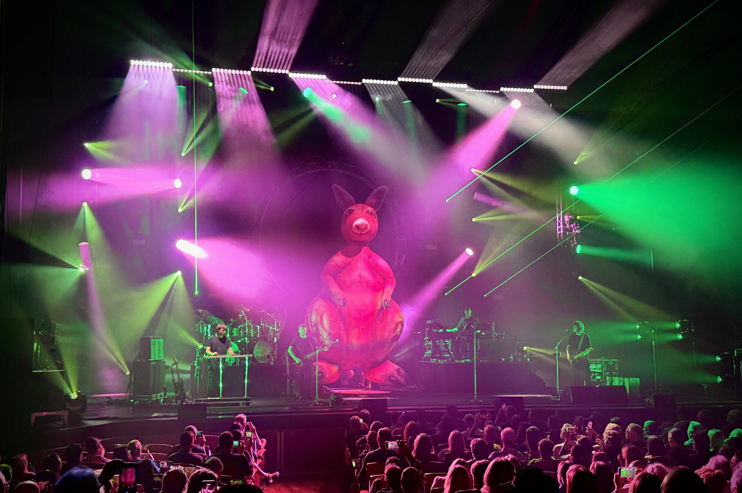 The momentum continued with a rousing “Money,” before shifting into later-era Floyd. “Sorrow,” from A Momentary Lapse of Reason, brought a darker, heavier edge with some monstrous guitar work, while “Marooned” and “Coming Back to Life” from The Division Bell captured the lush, expansive sound of the ’90s. The heavy bass rumble of “One of These Days” had the room vibrating and brought out a massive Kangaroo prop jumping up and down, thrilling the crowd. “Run Like Hell” brought the main set to a thrilling close, lights and lasers in full force.