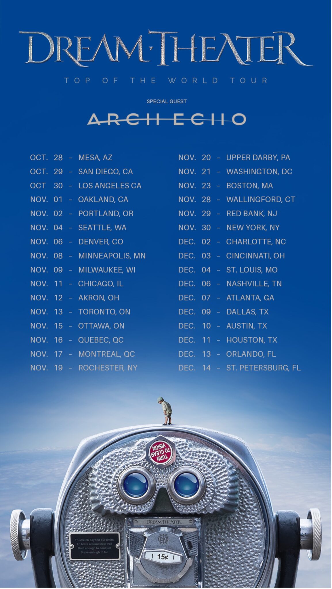 Dream Theater is also planning to hit the road in support of the new album. The Top Of The World Tour of North America kicks off on October 28th in Mesa, AZ and runs through December 14th where it concludes in St. Petersburg, FL. The tour will make stops in Seattle, WA; Chicago, IL; Washington, DC; New York, NY and Orlando, FL among others. Information on tickets for all upcoming shows as well as VIP packages can be found at www.dreamtheater.net.
