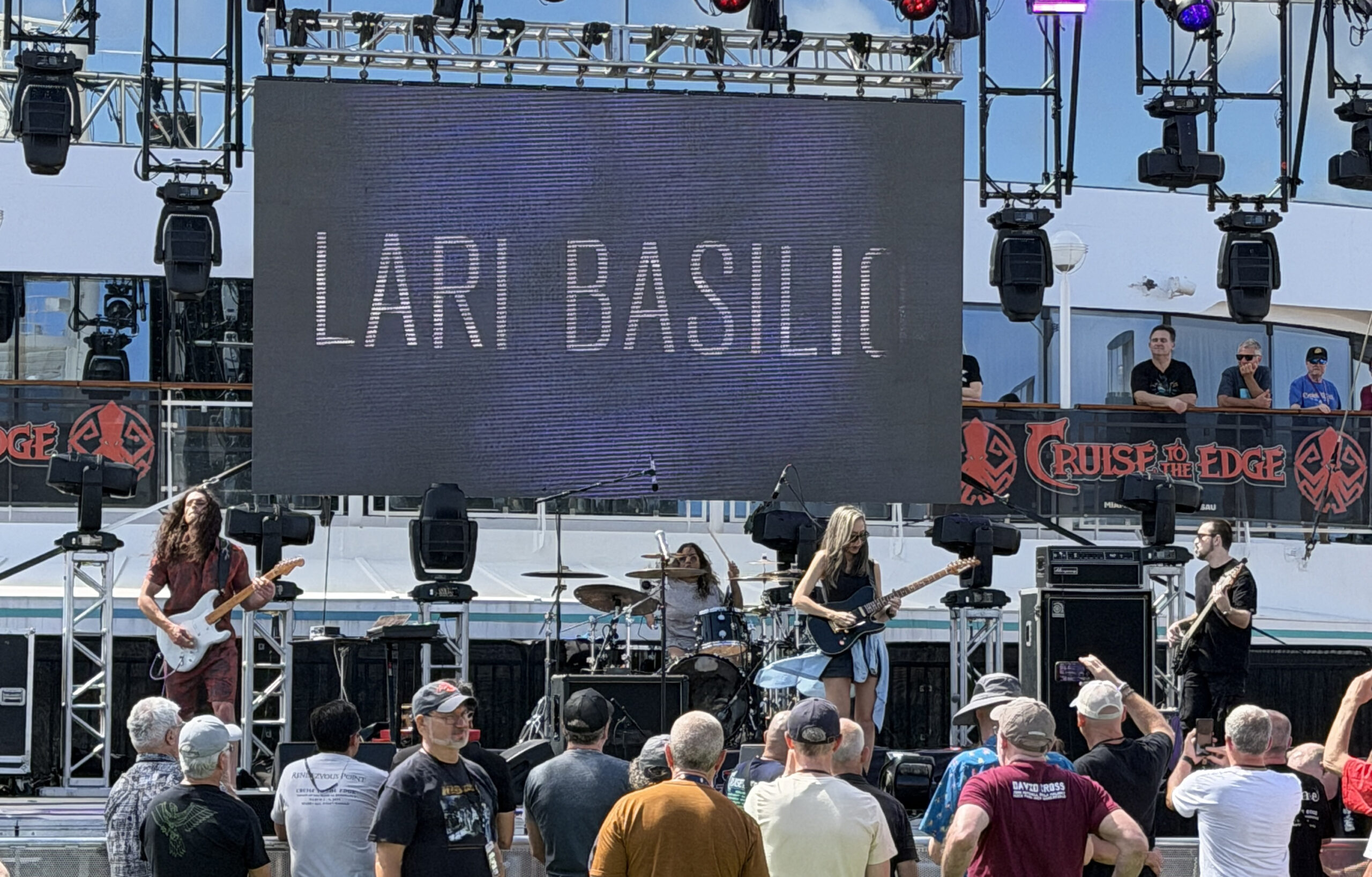 The Prog Report’s editor Roie Avin, kicked off day 3 with a lively in-person episode of Wheel Of Prog featuring Ross Jennings, Randy McStine and Crown Lands members Cody Bowles and Kevin Comeau, ranking Prog epics. As always, this is a lot of fun and creates some interesting debates. This was followed by a Lifesigns Q&A. Then came one of the biggest surprises of the cruise for me. Encouraged by my knowledgeable Prog Report colleague and friend, Jeremy Lechner, I went to watch Lari Basilio. Great call, Jeremy. This small package of dynamite delivered explosion after musical explosion and truly deserves to be recognised as one of the premier rock guitarists around. Thoroughly enjoyable.