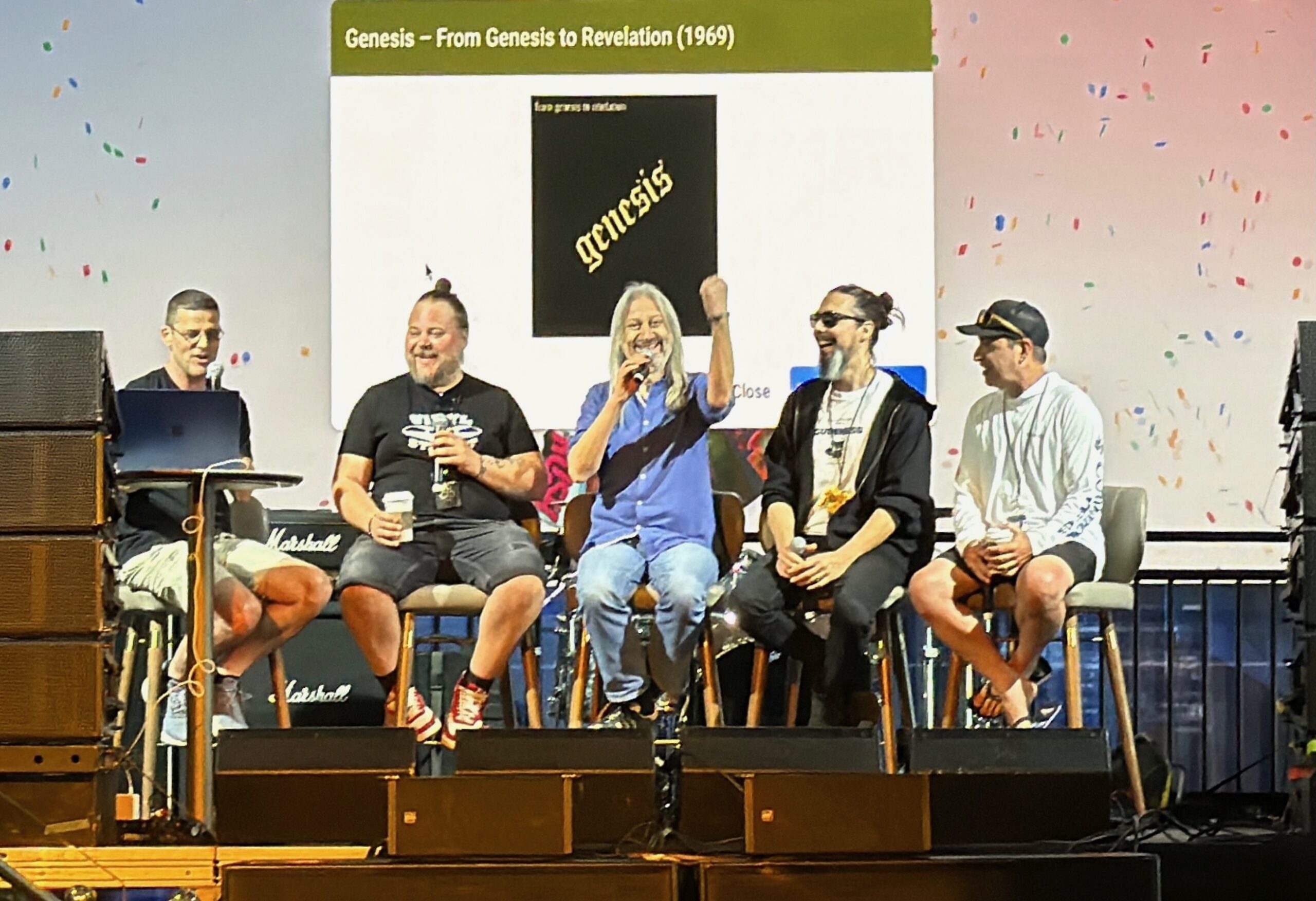 Day 5 was a swelteringly hot day at sea kicked off by the second Wheel of Prog ranking Prog debut albums, featuring Big Big Train’s Rikard Sjöblom, Greg Spawton, Alberto Bravin and Nick d’Virgilio (who did not disappoint with his always interesting perspectives.) At this point, I should mention the incredible job by the announcers who consistently ran from stage to stage to introduce the bands and MC various other events, including The Prog Report’s own Roie Avin, who introduced at least half of the bands and Q&A’s that I saw. These stalwart hosts which also include Jon Kirkman and Mike Dawson, along with Izzy Presley and DJ Will, kept the shows going and often had to sacrifice their own enjoyment for the sake of the bands and the fans.