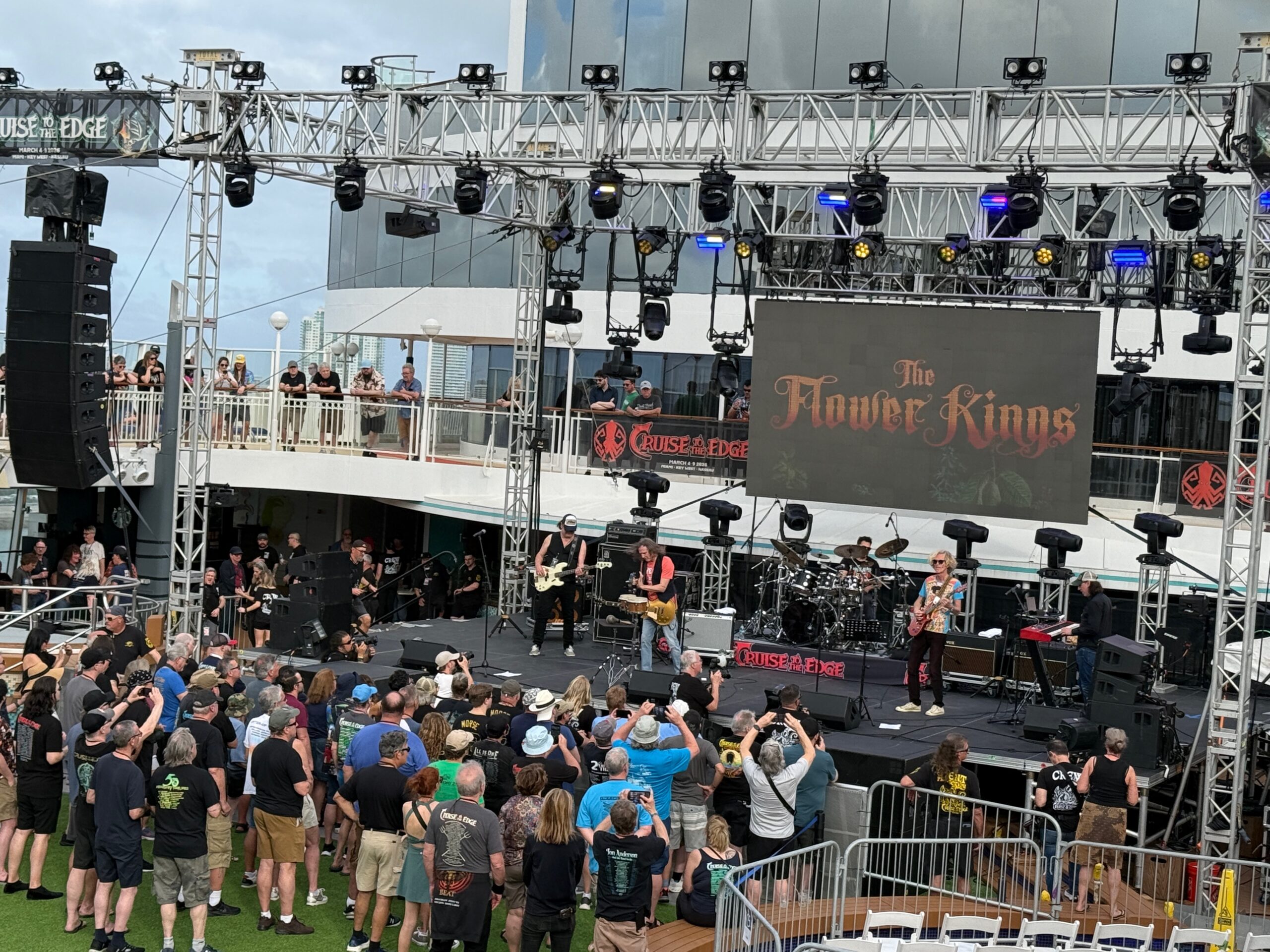 Eddie Jobson gave a Q and A before Lifesigns delivered their first gig on the Pool Stage. These now-recognised and anointed princes of the cruise did not disappoint. With brilliant new drummer Frank van Essen driving from the kit (and even playing some fine viola parts), Lifesigns played a brand-new song that was excellent and generally delivered a set consistently brilliant enough for them to retain their mantle as cruise favorites. A wonderful set.
