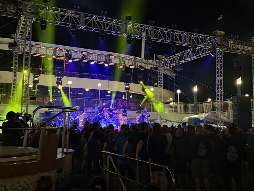 For me, the most impressive vocalist on the cruise was Queensryche’s Todd La Torre. This man has a power and range in his voice that very, very few can claim to emulate. You really have to see him live to understand. The band was thunderous, but in my opinion the mix was just too loud to be bearable towards the end of the set. Yes it was metal, yes it was outdoors, yes the PA had massive headroom, but it was just too loud for these ears. A 10db reduction would have made this the perfect metal gig.